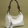 Beaded-Handle Lattice Jacquard Shoulder Bag