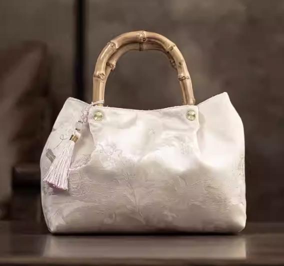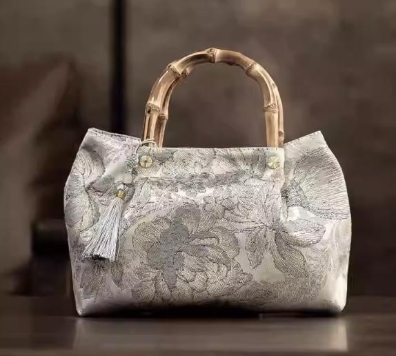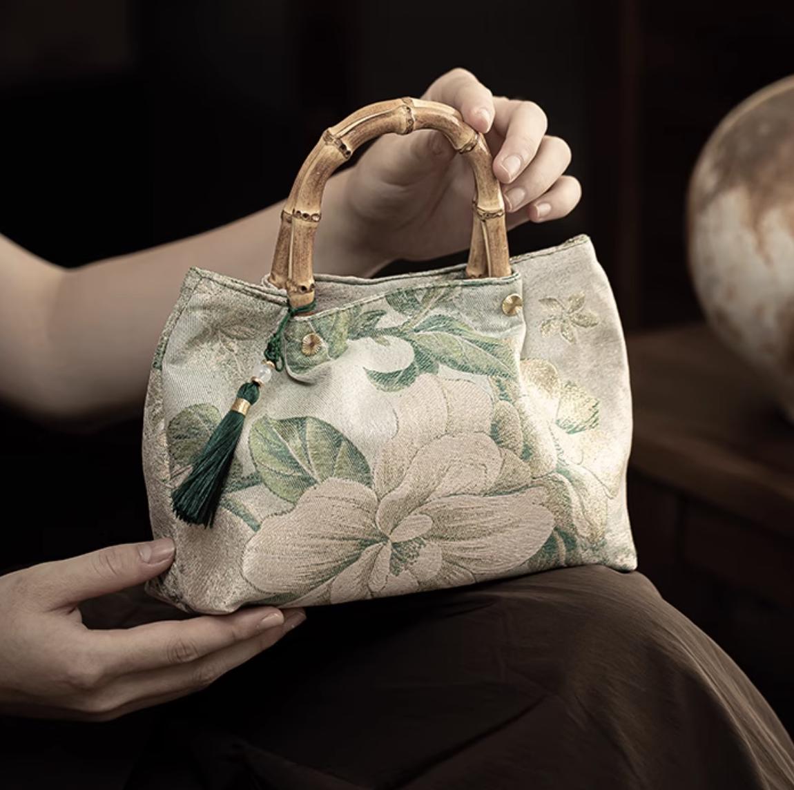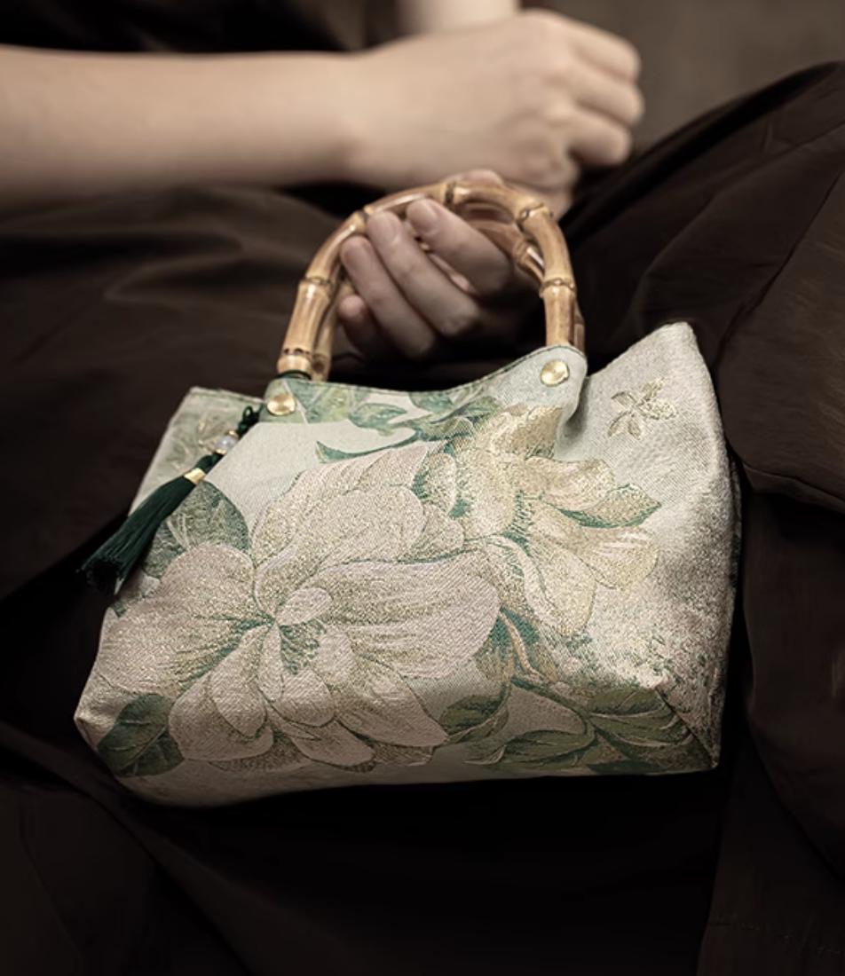 bamboo handle tote / orchid jacquard / removable tassel / elegant daytime bag / gift-ready accessory