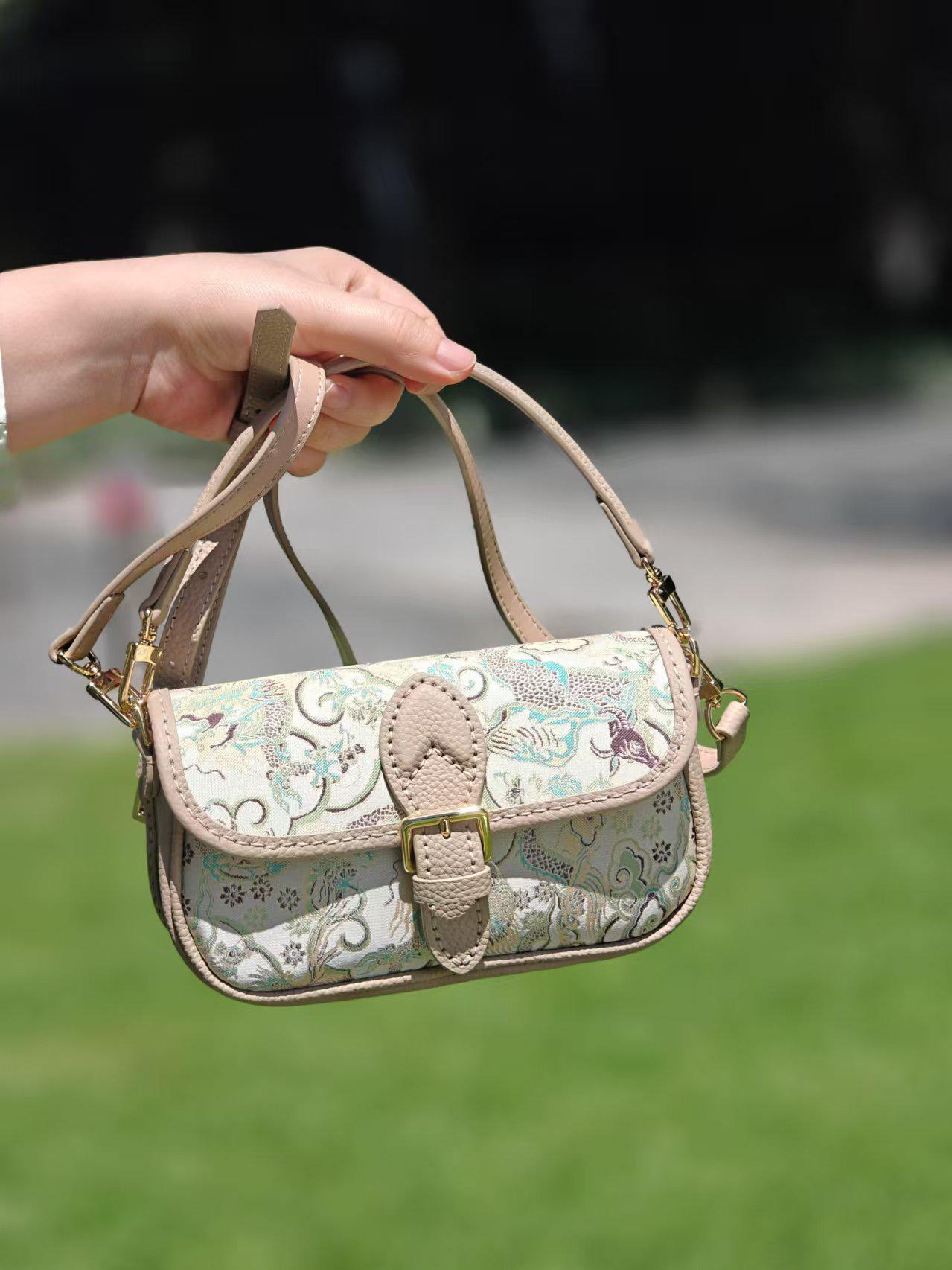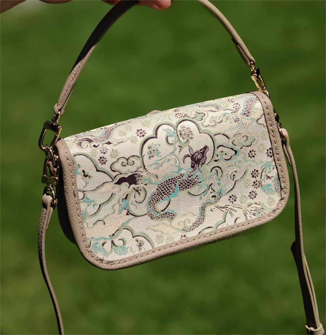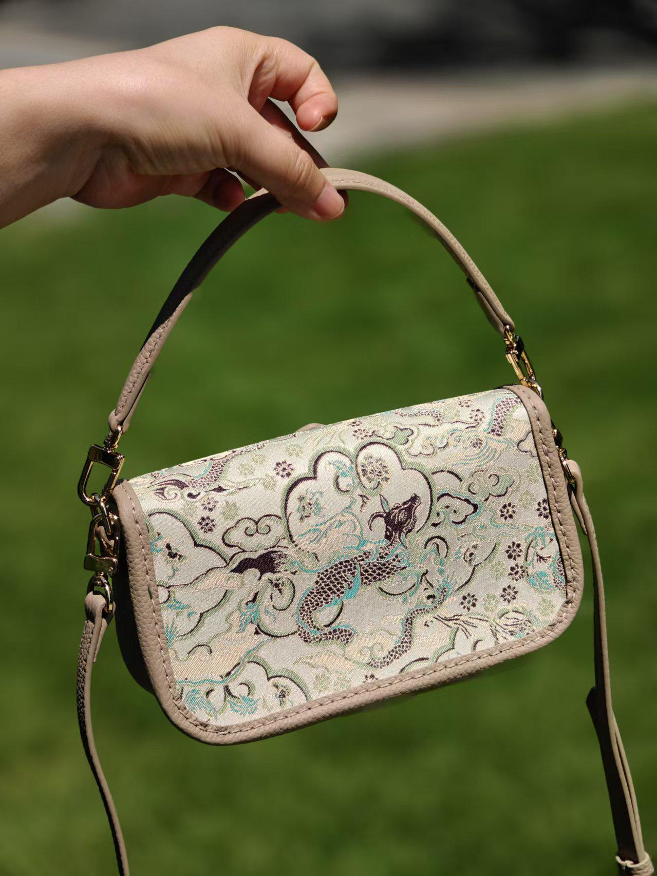 dragon embroidery / cloud motif / vintage-inspired shoulder bag / crossbody option / heritage chic