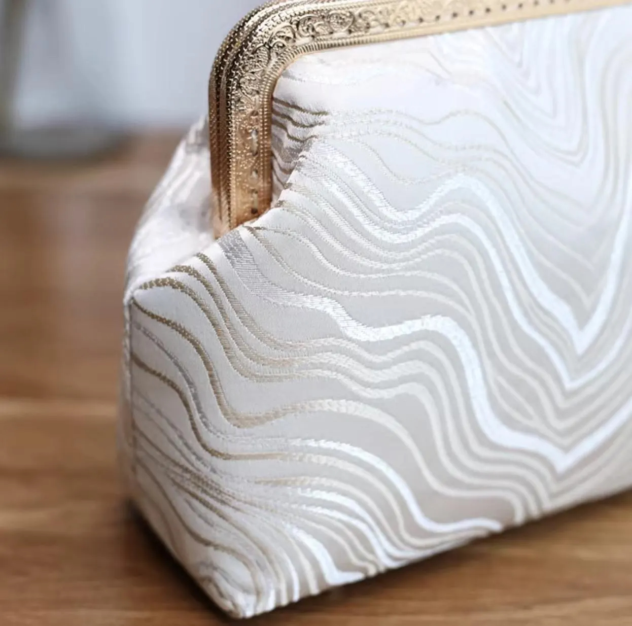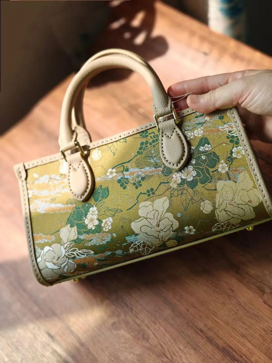 Spot-clean the textile with a soft dry cloth; avoid soaking and prolonged sun. Wipe hardware after use. Store in a dust bag with tissue inside to maintain shape.