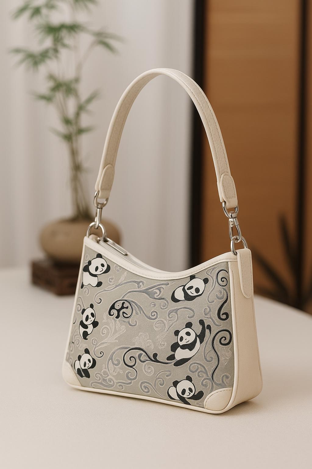 panda embroidery / cute shoulder bag / crossbody-friendly / casual chic / giftable accessory