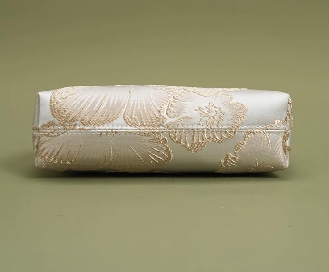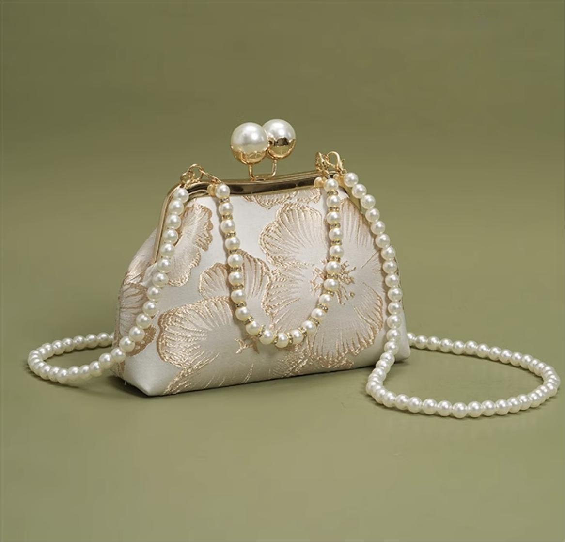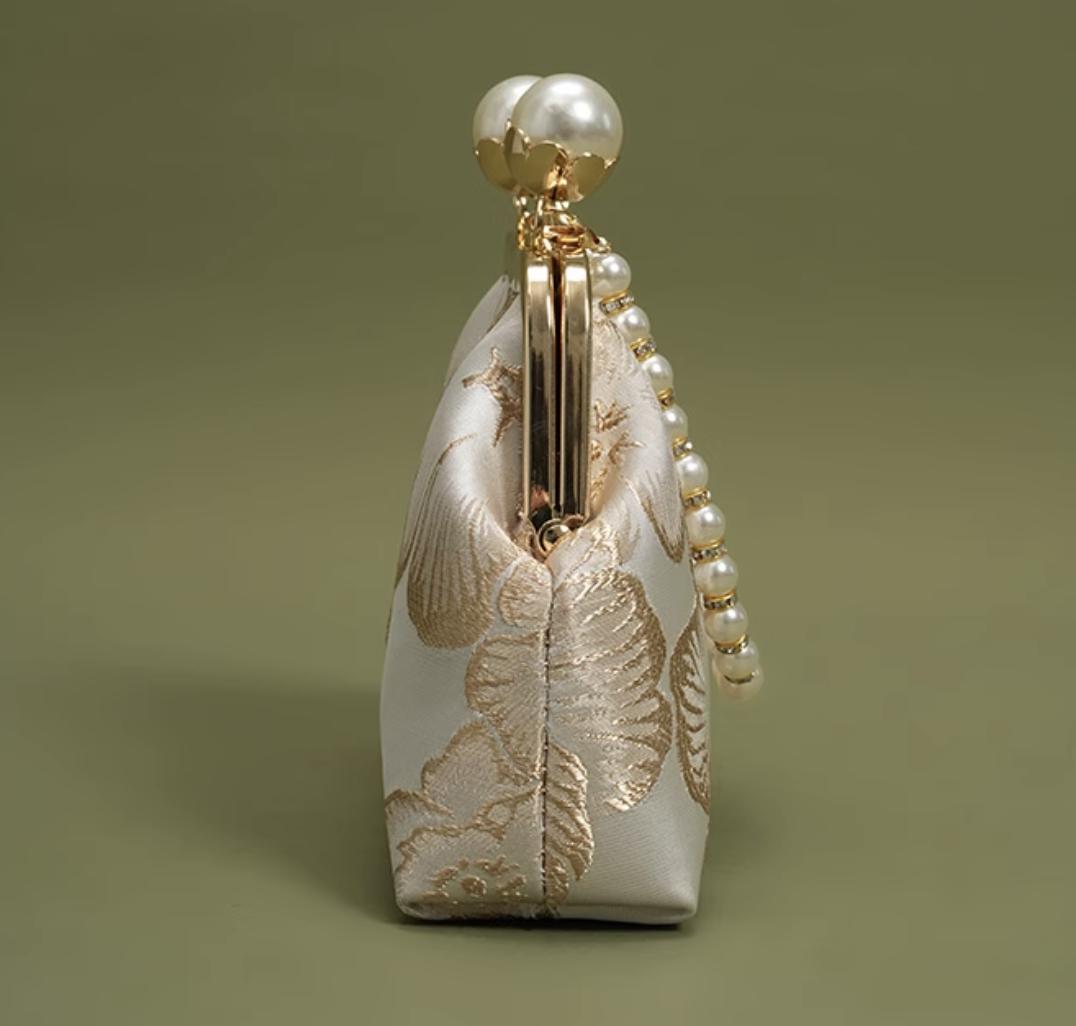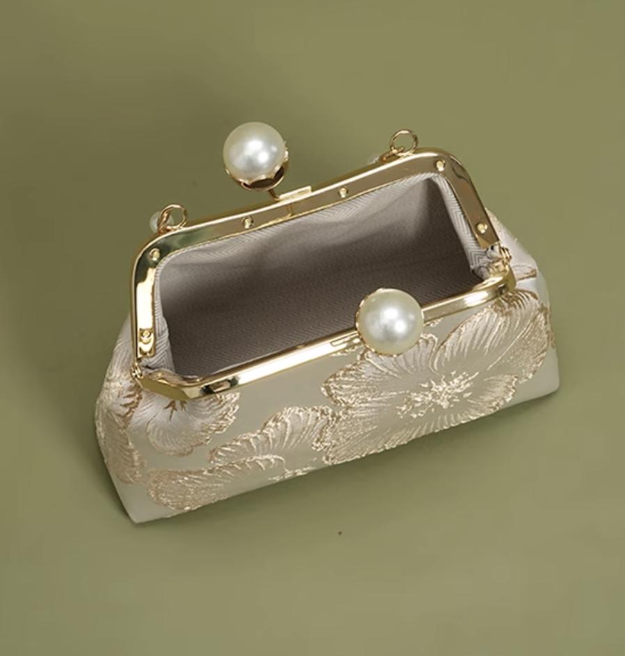 pearl clasp handbag / brocade evening bag / kiss-lock frame / wedding & banquet / gift-ready accessory