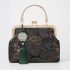 $5500Short Description Black brocade with swirling cloud scrolls and peony blooms in deep red and teal threads, framed by an engraved gold kiss-lock and an arched top handle with floral accents. A jade-style charm and dark-green tassel add graceful movement—regal and photo-ready. Key Highlights Engraved frame & kiss-lock: Polished gold hardware with a crisp, secure […]